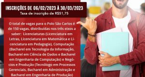 A Prefeitura Municipal de São Carlos, por meio da Fundação Educacional São Carlos, Polo UAB/UNIVESP São Carlos, informa a abertura de inscrição para o Processo Seletivo dos Cursos de Graduação em três áreas: “EIXO DE LICENCIATURA”, “EIXO DE COMPUTAÇÃO” e “EIXO DE NEGÓCIOS E PRODUÇÃO” oferecidos pela Universidade Virtual do Estado de São Paulo – UNIVESP. 1. EIXO DE LICENCIATURA ...