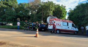Colisão entre caminhão e carro deixa mulher ferida na SP-215