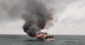 Um barco com nove pessoas pegou fogo em alto-mar em São Sebastião, no litoral de São Paulo, na tarde deste sábado (7). Apesar do susto, ninguém ficou ferido. De acordo com a capitã Karoline Burunsizian, do Corpo de Bombeiros, dois marinheiros saíram de Ilha Bela e pararam na praia de Paúba, em São Sebastião, onde sete passageiros embarcaram. O destino final ...