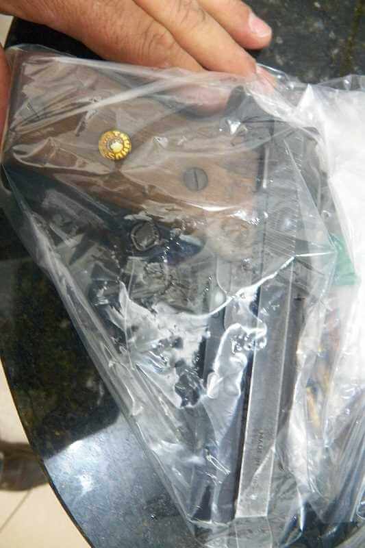 Ainda de acordo com boletim de ocorrência, os policiais rodoviários  faziam patrulhamento e ao efetuarem o retorno pela passagem inferior da referida rodovia, depararam-se com um veículo do indiciado transitando na contramão.  Foi realizada a abordagem e o motorista apresentava sinal de nervosismo. Em revista ao veículo localizou-se atrás do banco do motorista,  no interior de uma mochila,  cinco cartuchos calibre 380, todos intactos .  Continuando a busca os policiais localizaram no porta objetos, sob o banco do passageiro uma pistola calibre 380 com onze cartuchos íntegros. Indagado o indiciado disse que está arma pertencia seu pai, então falecido e como ele trabalha com transportes estava com medo de ser assaltado, por essa razão portava a arma. Diante das circunstâncias os policiais lhe deram voz de prisão.