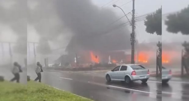 Câmera de segurança de um supermercado próximo registrou o momento da queda. Assista abaixo: