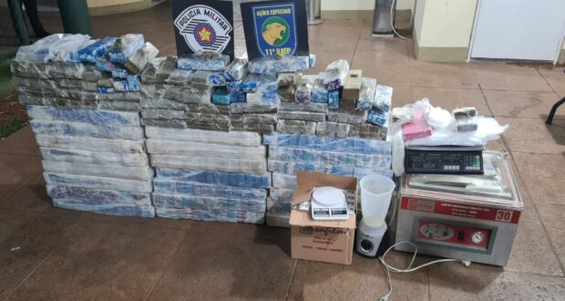 Ao se aproximarem da residência, os PMs sentiram um forte cheiro de maconha. Dentro da casa, em um dos cômodos foram localizados 441 tijolos da droga. Em outro cômodo foram apreendidos um liquidificador, uma máquina de embalar a vácuo, balanças e 23 rolos de filme de PVC utilizados para o embalo da droga.
