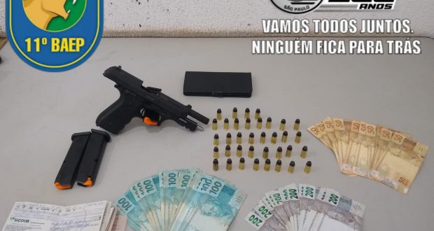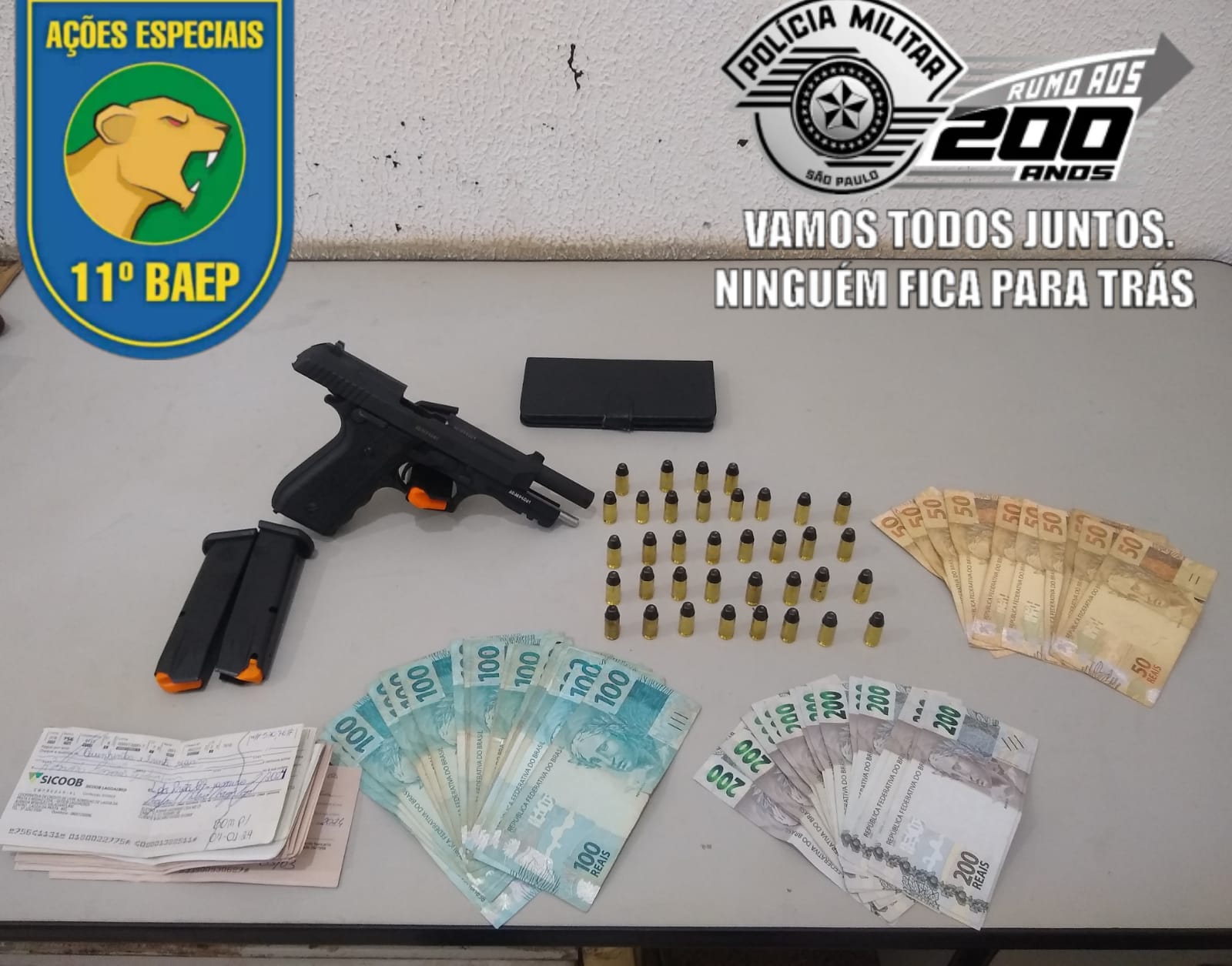No último dia 01-03-2024, o BAEP de Ribeirão Preto-SP, após receber denúncia anônima deteve um criminoso na  Vila Elisa, apreendeu uma arma de fogo e pneus produtos de crime.