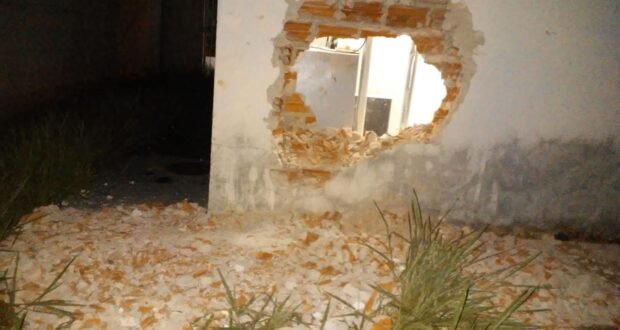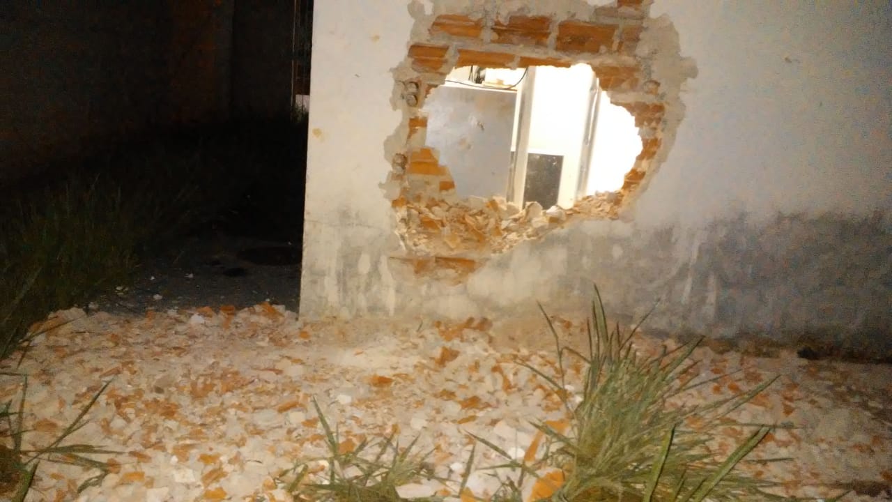 Segundo informações,  a PM foi acionada para o local e encontrou a parede com um grande buraco.  O alarme estava disparado. Segundo informações,  não foi possível localizar nenhum representante do banco. A Polícia Civil foi comunicada,  mas como não foi localizado ninguém responsável pelo banco, não foi registrado boletim de ocorrência.  Não foi possível verificar se algo foi subtraído.