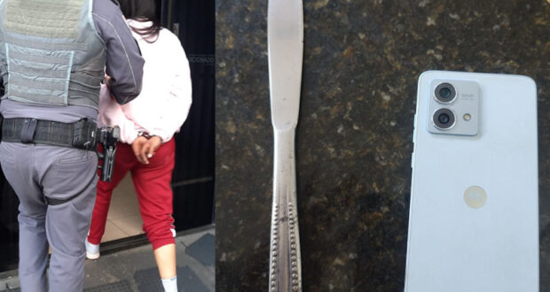 De acordo com informações, a vítima de 44 anos, estava falando ao celular, quando foi surpreendida pela criminosa. A bandida mostrou uma faca, desferiu um tapa no rosto da vítima e roubou o celular. Depois fugiu. A criminosa na fuga dispensou a faca e adentrou na sua casa. A PM foi acionada e deteve R. T. S, de 38 anos. Ela mostrou para os policiais onde havia escondido o aparelho celular. Diante da situação, os policiais cabo Nogueira e soldado Pelegrini encaminharam a bandida para a Central de Polícia Judiciária, onde foi autuada em flagrante pelo crime de roubo e recolhida ao Centro de Triagem de São Carlos. Ainda de acordo com a PM, a indiciada tem várias passagens policiais. Dentro de 24 horas ela deverá ser ouvida em Audiência de Custodia, caso seja mantida presa, deverá ser transferida para uma cidade da região.