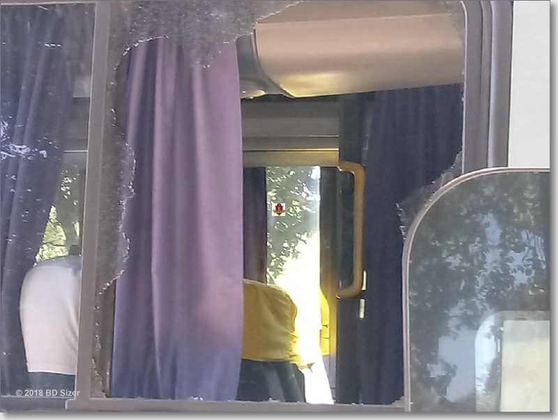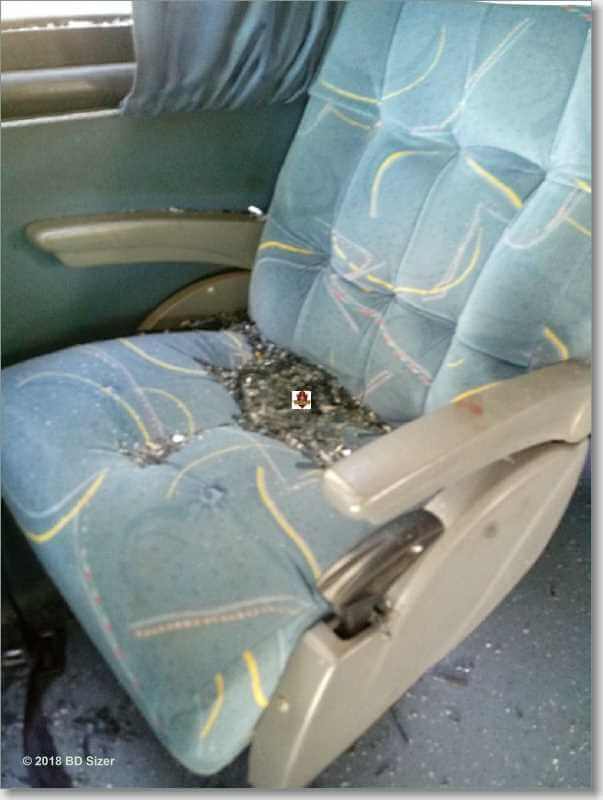 Segundo informações, o motorista do ônibus mora na região e sempre deixa o mesmo estacionado nas proximidades de sua casa. Hoje percebeu que o veículo estava com o vidro arrobado. O pedaço de madeira foi localizado no interior do ônibus, juntamente com sangue do criminoso. Fato registrado no Plantão Policial onde também foi realizado a perícia. Segundo a vítima, nada foi subtraído.