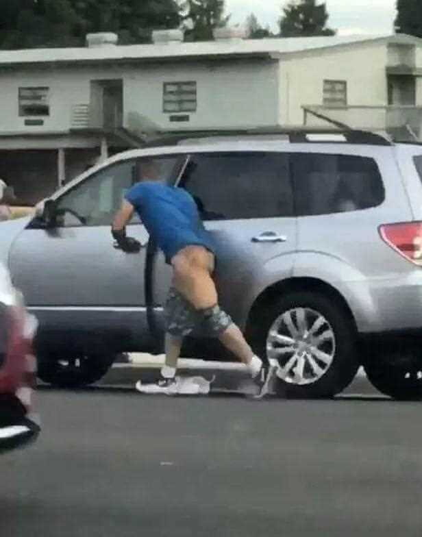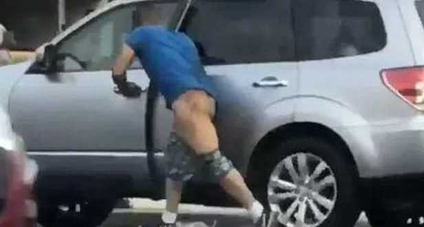 Nas imagens é possível ver o suspeito tentando roubar um carro. O motorista, no entanto, percebe a movimentação e sai em disparada, enquanto que o bandido fica com a mão na porta e é arrastado por alguns metros. O criminoso ficou sem o short que usava e por pouco não ficou pelado.