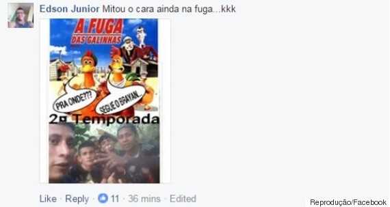 O fato que chama atenção que o parece eles ainda estavam escondidos na mata, porém com celular e Internet. Os presidiários tiraram onda com a justiça e em pouco tempo já haviam conseguido milhares de clicadas. Com mais de 7,6 mil compartilhamentos, 20 mil curtidas e mais de 12 mil comentários. Usuários brincaram com a situação, fazendo montagens da foto com diversos filmes, como “Prenda-me se for capaz” e “Fuga das Galinhas”. Já outros internautas não levaram na brincadeira e chegaram a marcar páginas da Polícia Civil e Federal.