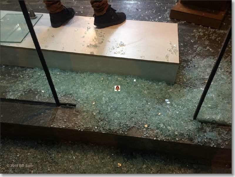 Uma loja situada na Avenida Dr. Carlos Botelho, região central de São Carlos-SP, teve sua vidraça estourada durante esta madrugada de terça-feira, 15 de maio de 2018.