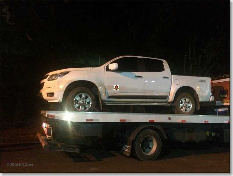 Segundo boletim de ocorrência, a caminhonete foi roubada na rua Um na referida cidade. A vítima disse que foi rendida por três marginais. Os mesmos estavam armados e colocaram a mulher e uma criança em um quarto na mira de arma de fogo. Os criminosos ameaçaram o morador e roubaram objetos de valor e também o veículo.