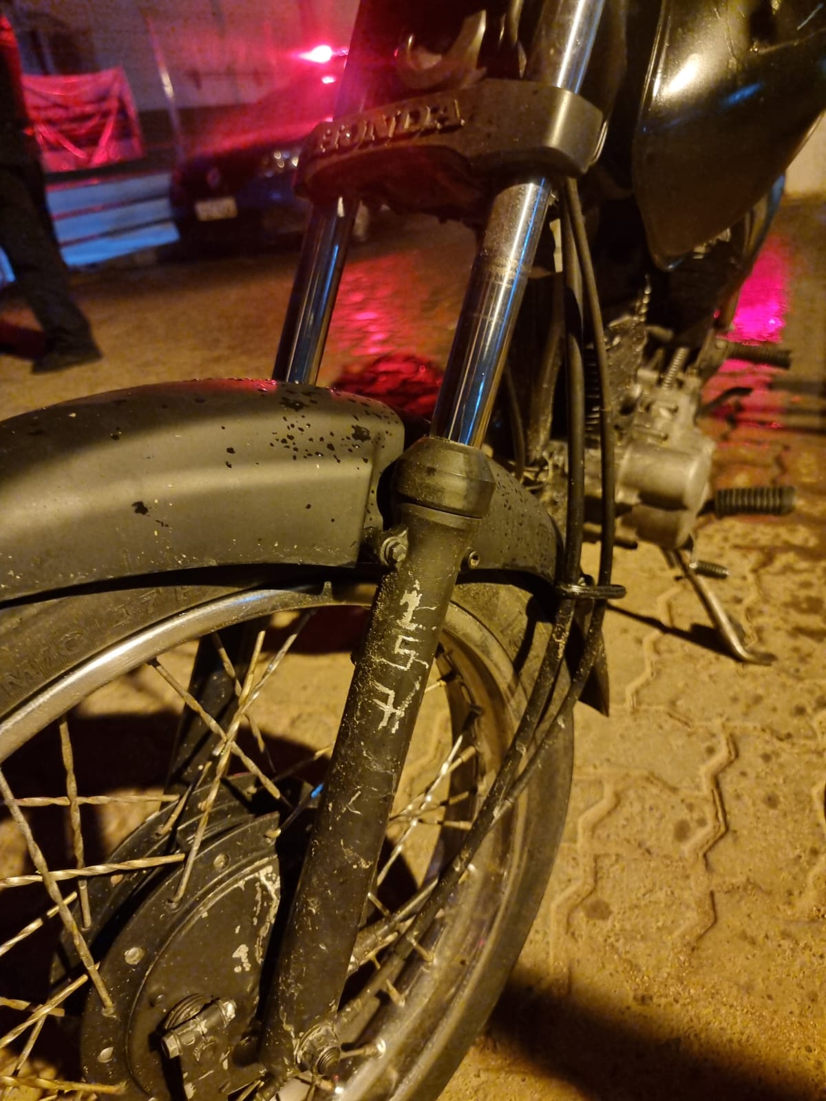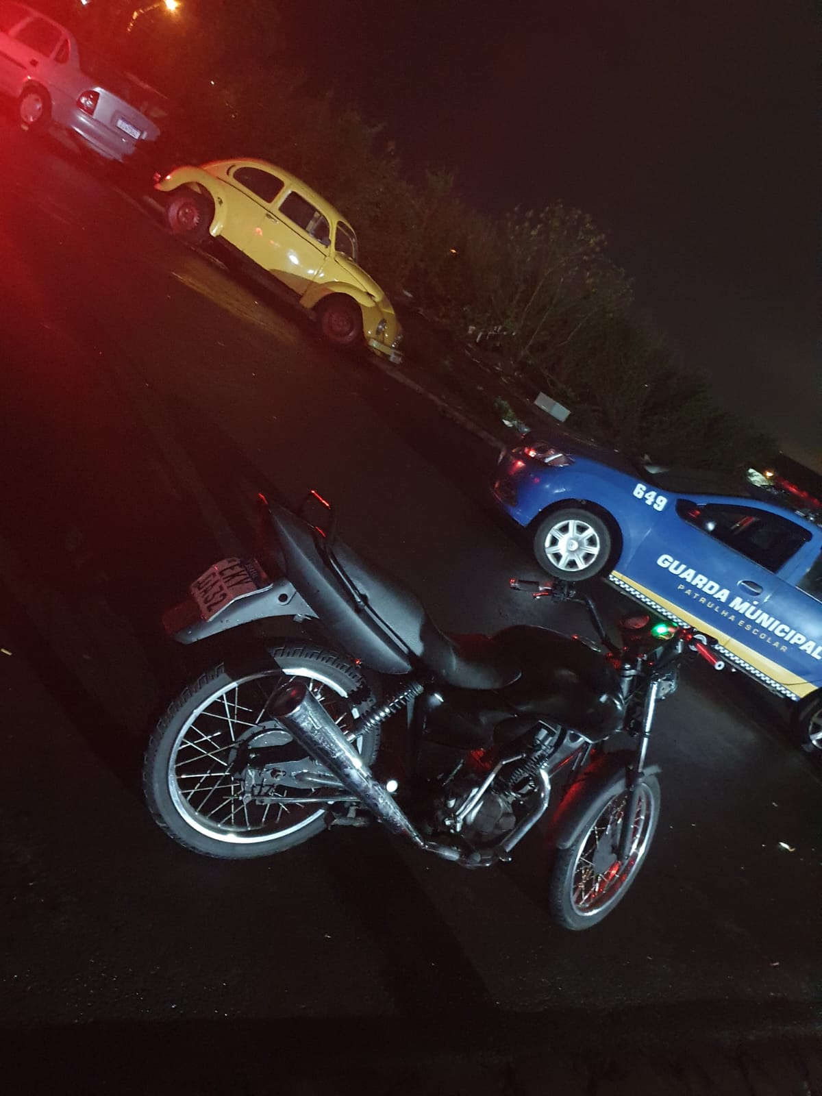 Dois bandidos fugiram da GM na noite do dia 12-10-2023 e abandonaram uma moto na Rua Bruno palka, bairro Antenor Garcia, São Carlos-SP.