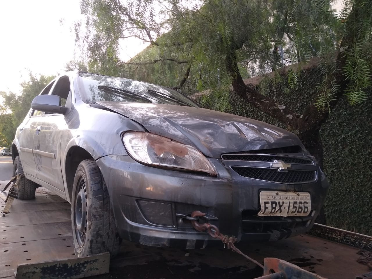 Segundo informações, a equipe foi acionada via COPOM para atendimento de um veículo capotado em uma área rural, estrada de terra, atrás do jardim Menzani , que liga ao jardim Icaraí. No local indicado pelo COPOM foi encontrado um veículo GM PRISMA CINZA todo danificado estando capotado e com as rodas pra cima. Através de consulta não constava queixa-crime, durante o começo do registro de ocorrência compareu a SRA. M.A.F (que chegou até o local com ajuda de transeuntes os quais viram dois individuos dirigindo referido veículo em alta velocidade).