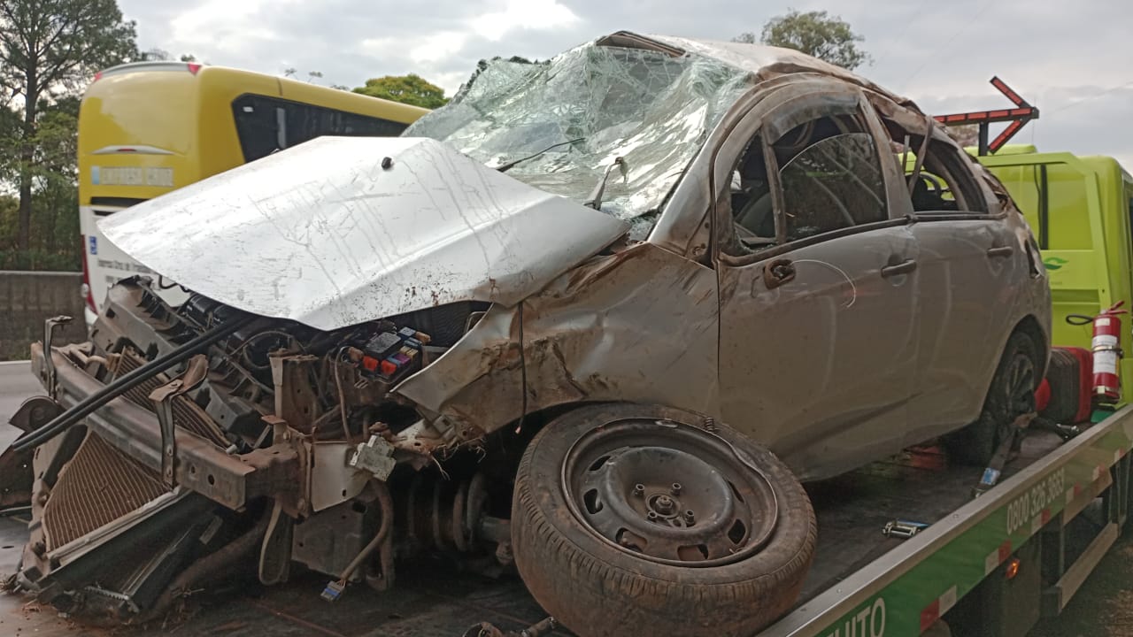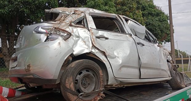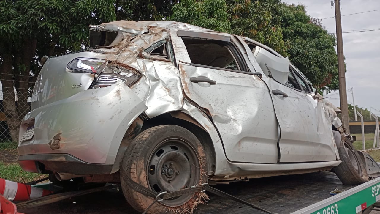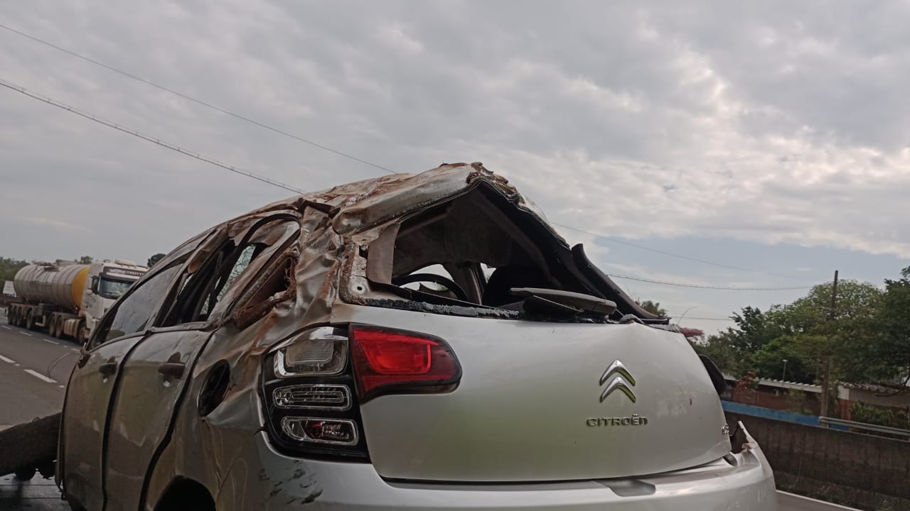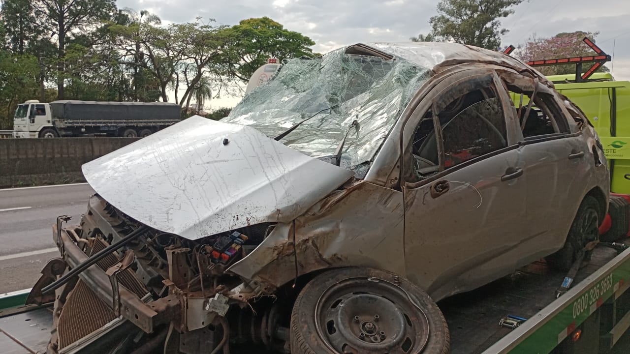 Um carro roubado no bairro Cidade Jardim, São Carlos-SP, capotou nesta manhã de segunda-feira, 18 de setembro de 2023, na rodovia Washington Luís.