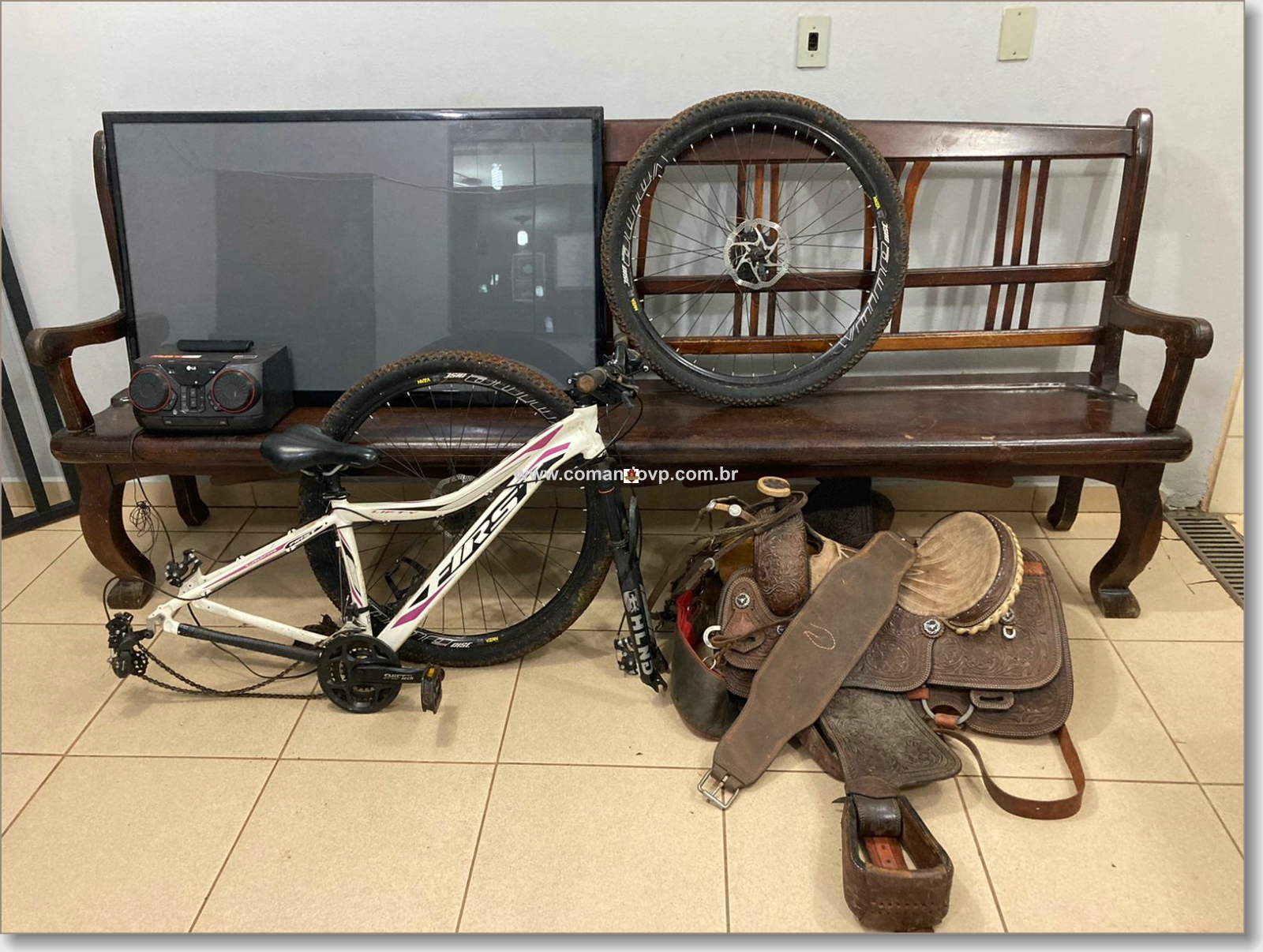 No veículo foram localizados uma tv, uma sela, um aparelho de som e uma bicicleta. Os detidos acabaram confessando que haviam acabado de pratica o delito. Todos foram encaminhados à Central de Polícia Judiciária, onde os maiores foram autuados em flagrante por furto e recolhidos ao Centro de Triagem de São Carlos. O menor foi liberado.