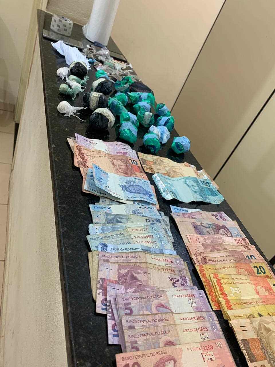 Durante vistoria no imóvel foram localizados 215 microtubos de cocaína, 136 Invólucros de maconha, 155 pedras de crack , R$ 651,00 e contabilidade e apetrechos para o tráfico de drogas.