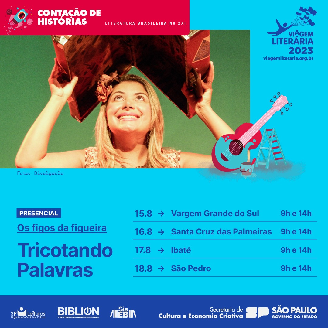 Dia 17 de agosto, quinta-feira, a Biblioteca Municipal de Ibaté recebe o módulo “Contação de Histórias” da 15ª edição do Programa Viagem Literária, contando com a presença da Companhia Tricotando Palavras.
