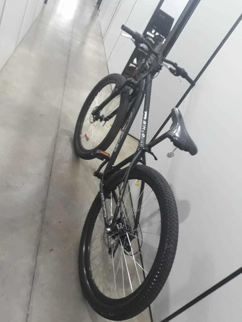 A Polícia Militar apreendeu uma bicicleta nesta manhã de terça-feira, 21 de maio de 2019, após um indivíduo correr no bairro Antenor Garcia, São Carlos-SP.