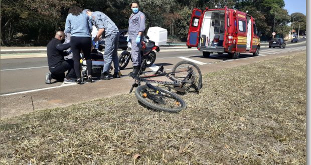 Ele parou e acionou o socorro para a vítima, a qual foi encaminha a uma unidade hospitalar. A bicicleta ficou danificada.