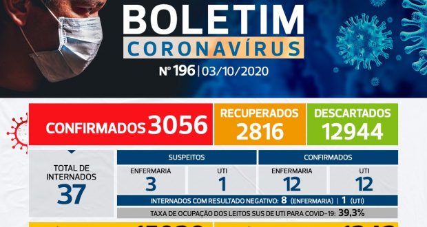 Dos 3.056 casos positivos, 2.831 pessoas apresentaram síndrome gripal e não foram internadas, 3 óbitos sem internação, 222 pessoas precisaram de internação devido a COVID-19, 162 receberam alta hospitalar, 18 estão internadas e 42 positivos internados foram a óbito. 2.816 pessoas já se recuperaram totalmente da doença. 12.944 casos suspeitos já foram descartados para o novo coronavírus.