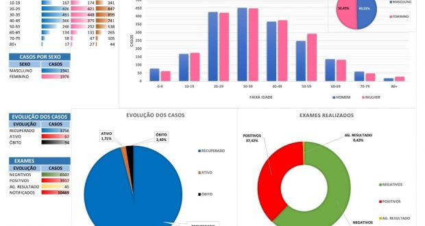 Desde o registro do primeiro caso na cidade – em abril de 2020 – até o último sábado, a cidade registrava um total de 6.507 casos negativados (62,15%) e apenas 0,43% aguardavam resultados de exames.