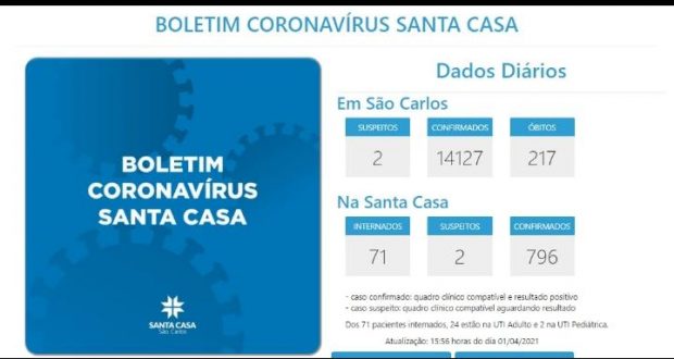 INTERNADOS POR COVID-19 NA SANTA CASA SÃO CARLOS – 01/04/2021