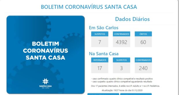 *INTERNADOS POR COVID-19 NA SANTA CASA SÃO CARLOS – 01/12/2020*