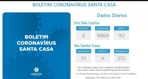*INTERNADOS POR COVID-19 NA SANTA CASA SÃO CARLOS – 09/03/2021*