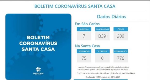*INTERNADOS POR COVID-19 NA SANTA CASA SÃO CARLOS – 30/03/2021*