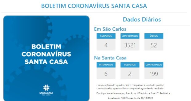 *INTERNADOS POR COVID-19 NA SANTA CASA SÃO CARLOS – 29/10/2020*