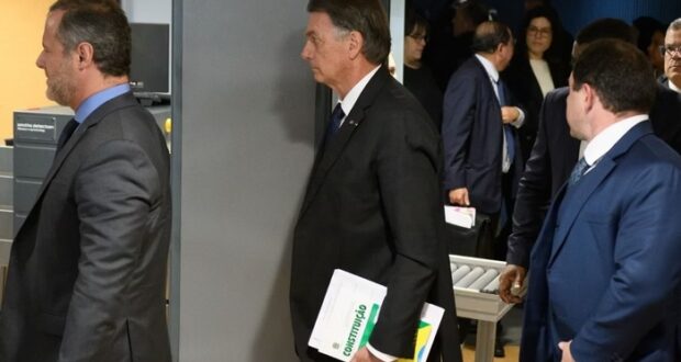 O ex-presidente Jair Bolsonaro (PL) retornou a Primeira Turma do Supremo Tribunal Federal (STF), após pausa para almoço, com uma Constituição Federal em mãos. Bolsonaro será interrogado para prestar esclarecimentos no contexto da ação penal 2.688 que trata da suposta trama golpista para anular o resultado das eleições presidenciais de 2022, vencidas pelo presidente Luiz Inácio Lula da Silva (PT).