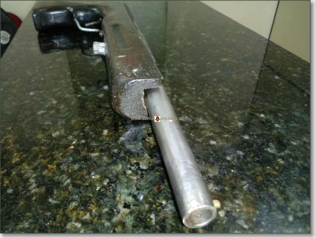 Segundo informações durante, a confusão o pai de 74 anos teria se apoderado de um vaso para agredir o filho de 43. O filho foi atingido no cotovelo direito , causando uma escoriação leve. Ato continuo o pai ameaçou pegar uma arma de fogo para matar o filho. Momento que a esposa impediu que ele não cumprisse a ameaça e o filho chamou a PM. O cabo Maike e soldado Ezequiel, com apoio do cabo Fernando e o sargento R. Neto localizaram a garrucha calibre 36 de fabricação caseira, três munições intactas. A arma estava no interior do guarda roupa.