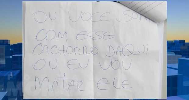 No início da madrugada desta sexta (11), outro bilhete foi encontrado: “Ou você some com esse cachorro daqui ou eu vou matar ele”.