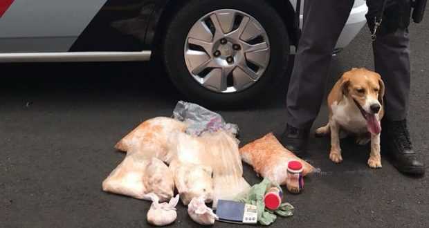Na tarde de quinta-feira (01-02-2018), na Rua Engenheiro José Carlos Blundi, Jardim das Hortênsias, em Araraquara-SP, cães em treinamento localizam 1,6 Kg de cocaína em um latão enterrado.