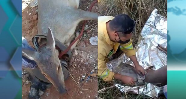 Foram mais de 3 horas de procura por alguém ou alguma instituição que pudesse socorrer o animal, até que o Corpo de Bombeiros foi acionado e socorreu a fêmea de Veado-Catingueiro, que estava prenhe, para uma clínica particular na Avenida Bento de Abreu, onde a veterinária fez o possível para salvar a mãe e seu filhote.