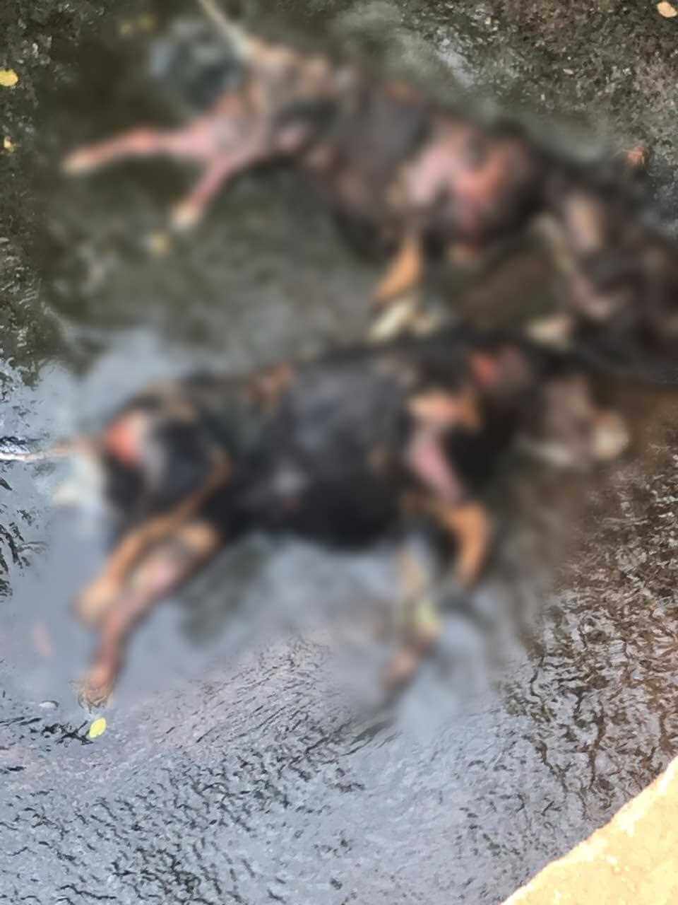 Moradores do bairro localizaram os corpos dos cães dentro de um córrego na rua Jaime Wright. De acordo com testemunhas, os cães estão no local há mais de três dias, ha marcas queimaduras pelos corpos dos cães. A área é bastante frequentada por agricultores e moradores da região.