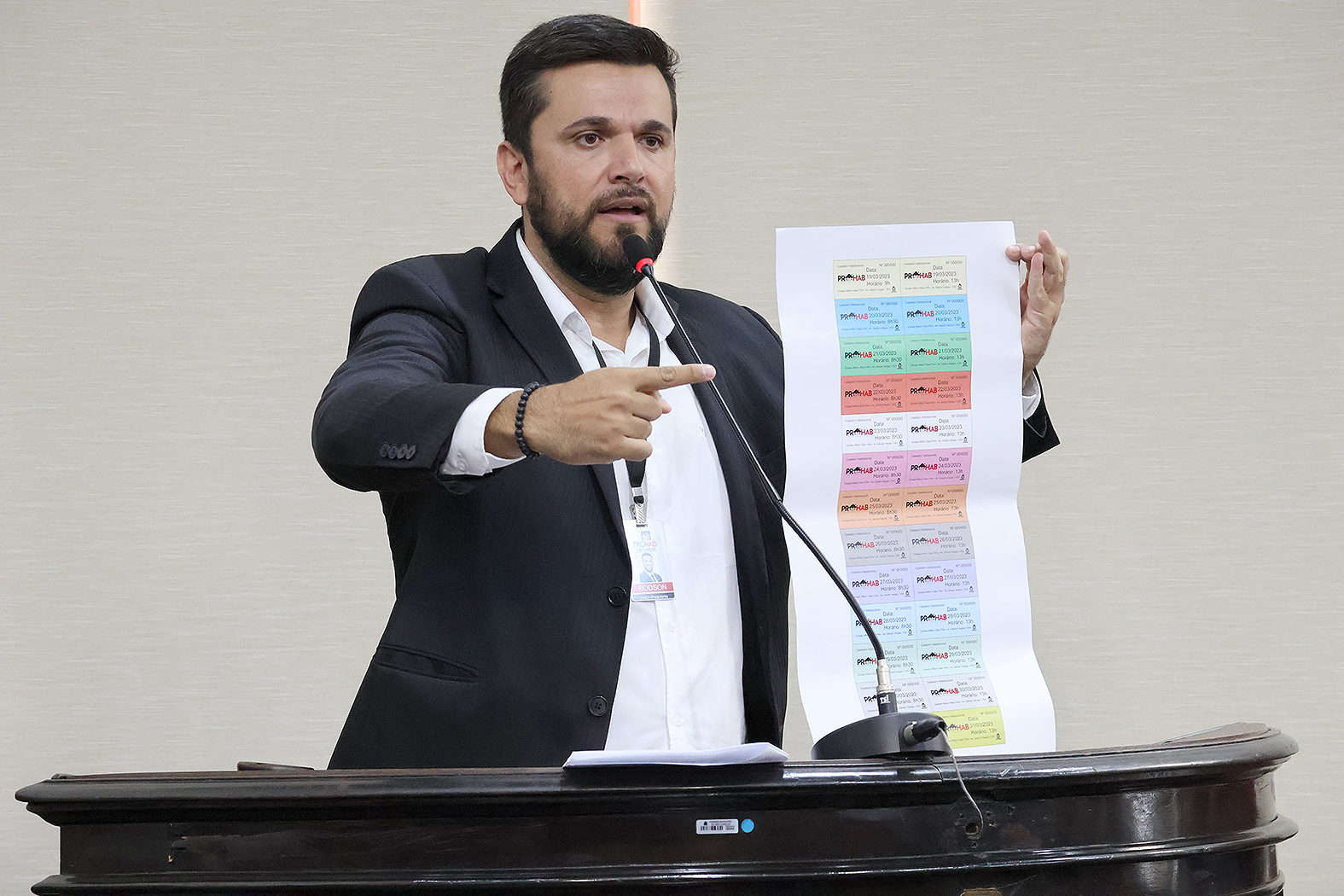 O cadastramento será realizado de 19 a 31 de março, das 9h às 17h, no Ginásio de Esportes Milton Olaio Filho. Rodson destacou que as senhas serão limitadas e entregues diariamente na bilheteria do ginásio. As senhas são organizadas por cores e definem dias e horários do atendimento.