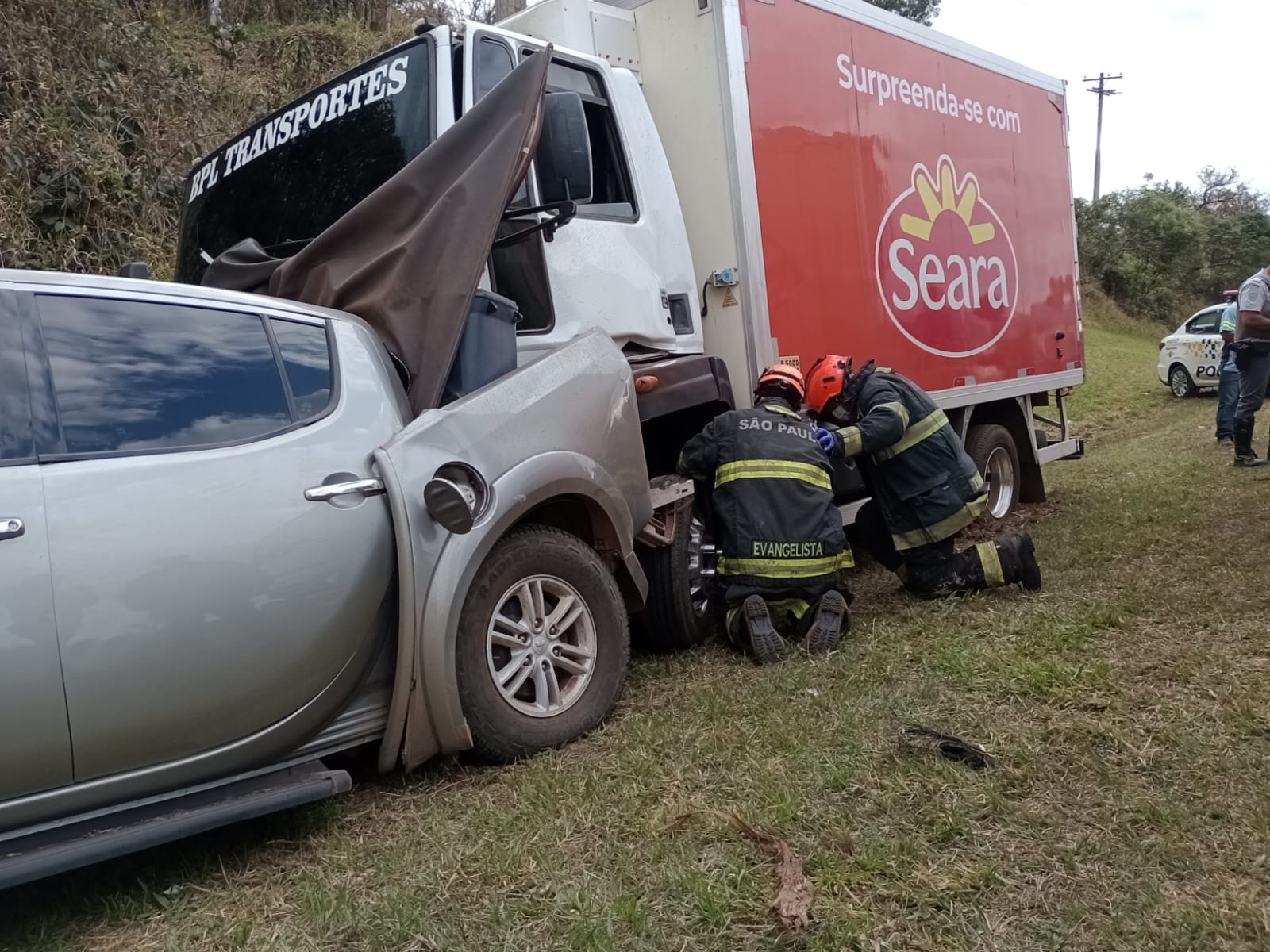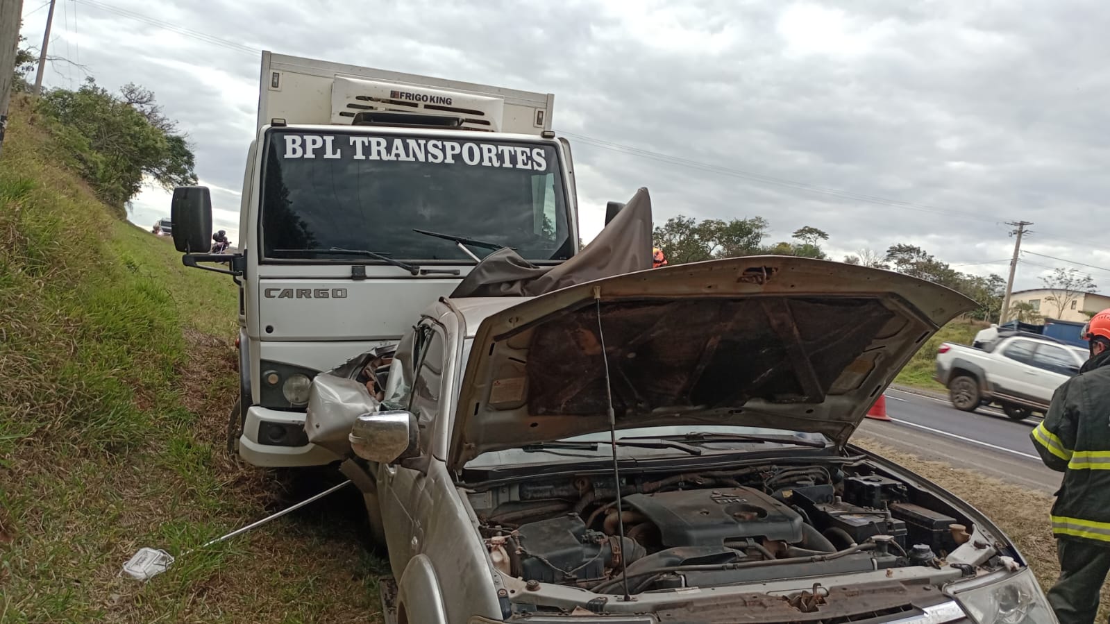 Um caminhão conduzido por um homem de 43 anos, saiu da pista e colidiu na traseira de uma caminhonete nesta tarde de terça-feira, 25 de julho de 2023, a qual estava parada no km 222 da rodovia Washington Luís, São Carlos-SP.