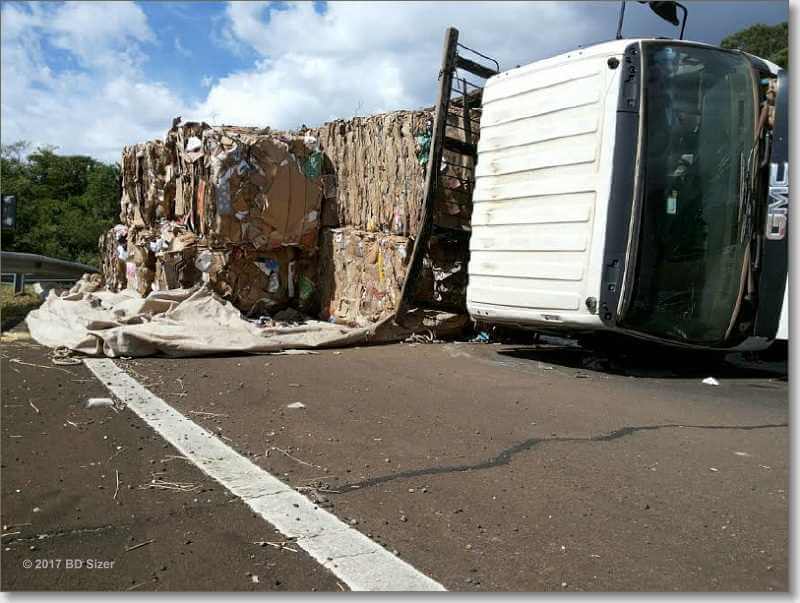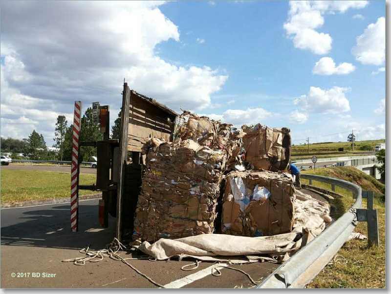 O caminhão placas de São Carlos estava carregado com papelão. A Polícia Militar Rodoviária esteve no local e tomou as medidas cabíveis.