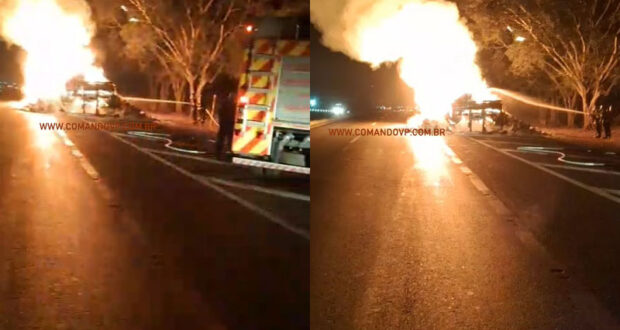 Durante a madrugada desta terça-feira, 22 de julho de 2025, um caminhão carregado com farinha de trigo pegou fogo no KM 244 da rodovia Washington Luís, região do Posto Nossa Senhora de Fátima, entre Ibaté/São Carlos-SP.