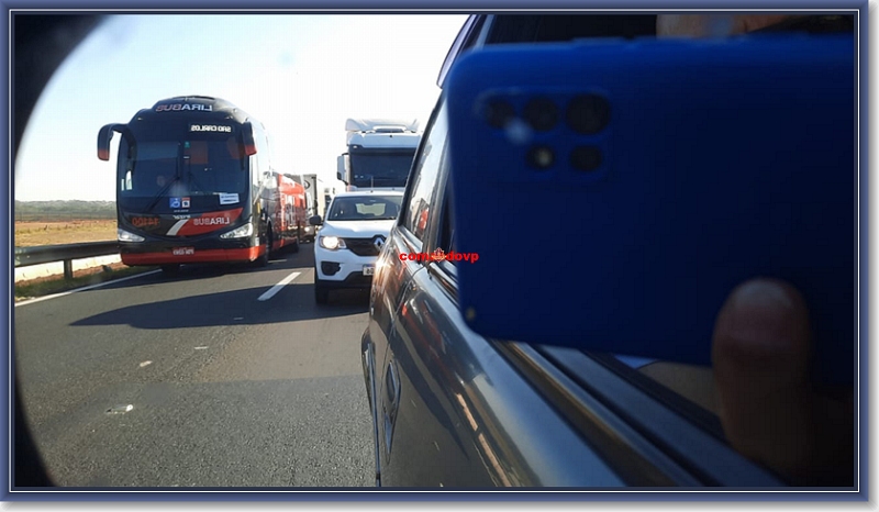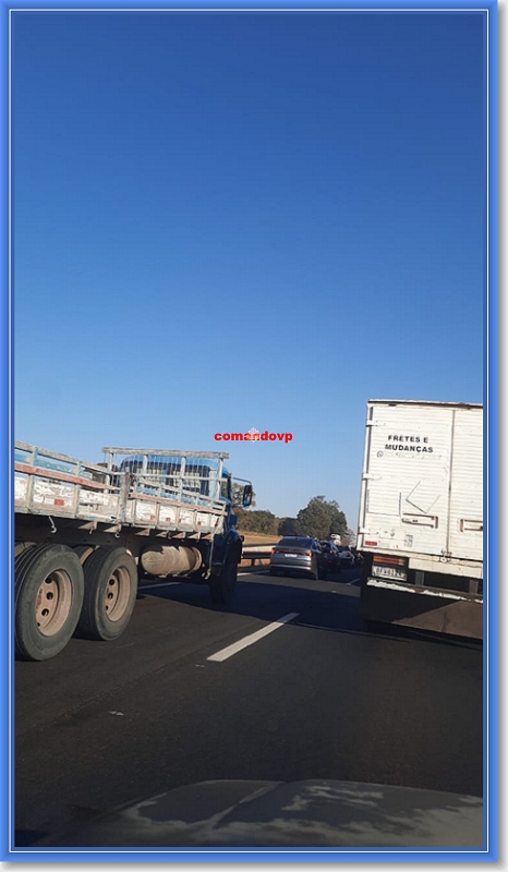 O trânsito no local está completamente congestionado, mas não só pelo acidente e sim, por obras na rodovia