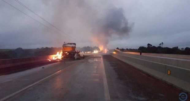 Uma pessoa morreu carbonizada num acidente entre duas carretas na BR-163, ocorrido na tarde de sexta-feira (09), na ponte sobre o rio Correntes, que divide os estados de Mato Grosso do Sul com Mato Grosso.