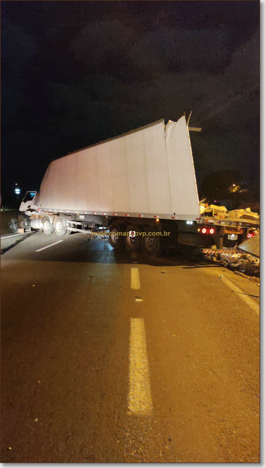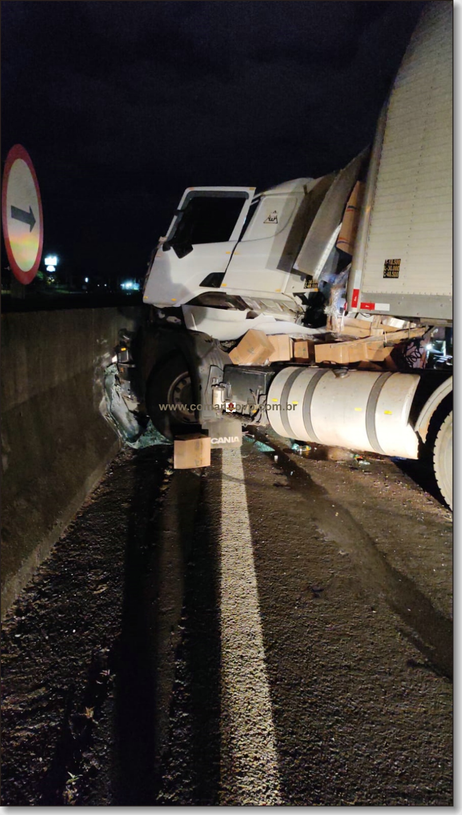 De acordo com a Polícia Militar Rodoviária, eram por volta das 23:30, o motorista, o qual não teve sua identidade revelada, transitava no sentido sul, por motivos desconhecidos, perdeu o controle da direção, colidiu na defensa metálica e posteriormente no pilar da passarela. O caminhão ficou no meio da pista, mas por sorte, o condutor nada sofreu. O fato ocorreu a poucos metros da Polícia Militar Rodoviária, a qual chegou rapidamente no local e tomou todas as medidas cabíveis.