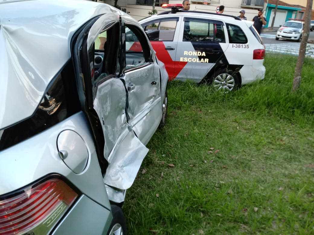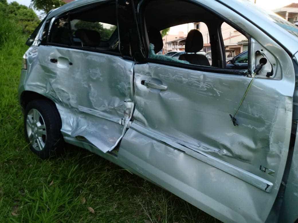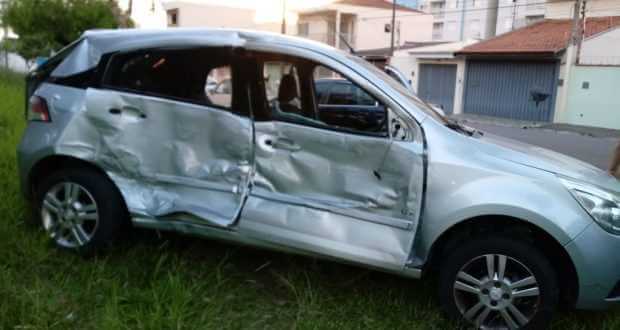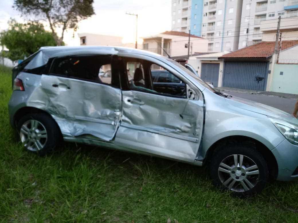 Um veículo Agile foi jogado alguns metros de distância após ter sido atingido por um caminhão nesta noite de segunda-feira, 11-02-2019, no cruzamento da rua José Ferraz de Camargo, com a rua Rotary Clube, bairro Vila Celina, São Carlos-SP.