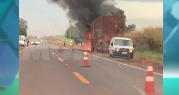 O caminhão seguia sentido a cidade de Rincão, quando o motorista notou que algo de errado acontecei com o motor do caminhão e parou no acostamento.