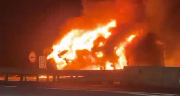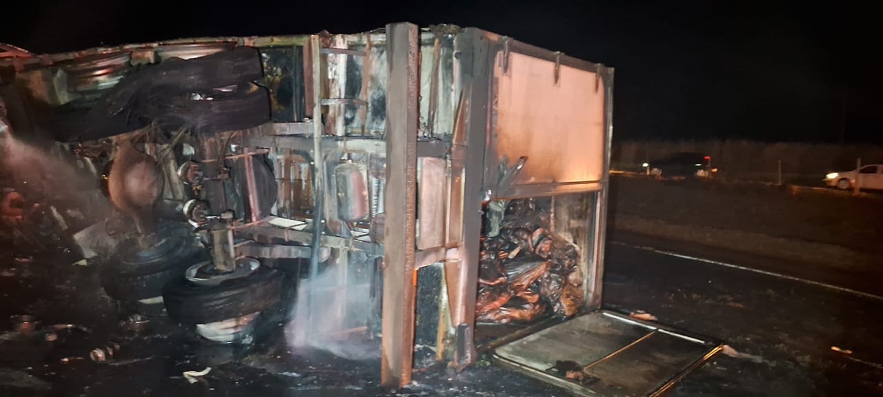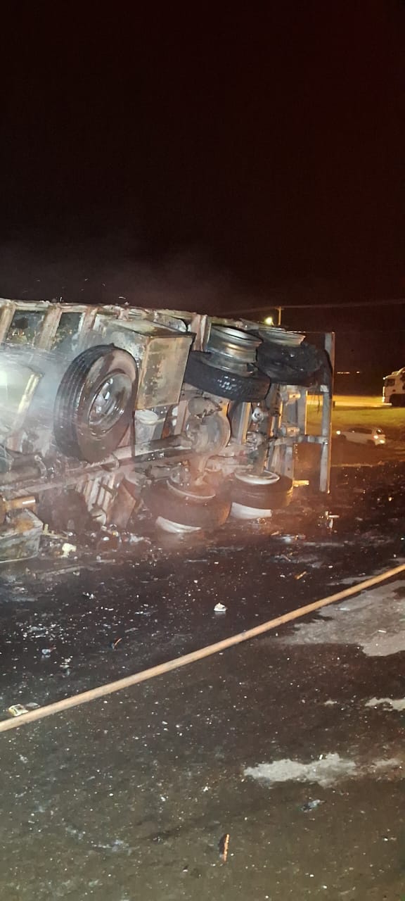 Segundo informações, o caminhão transitava no sentido interior/capital, quando teria atingido a traseira de uma carreta. Com o impacto o caminhão tombou e pegou fogo. O motorista conseguiu sair da cabine e ficou levemente ferido. O Corpo de Bombeiros e a Polícia Militar Rodoviária estiveram no local e tomaram as medidas cabíveis. O trânsito ficou lento.