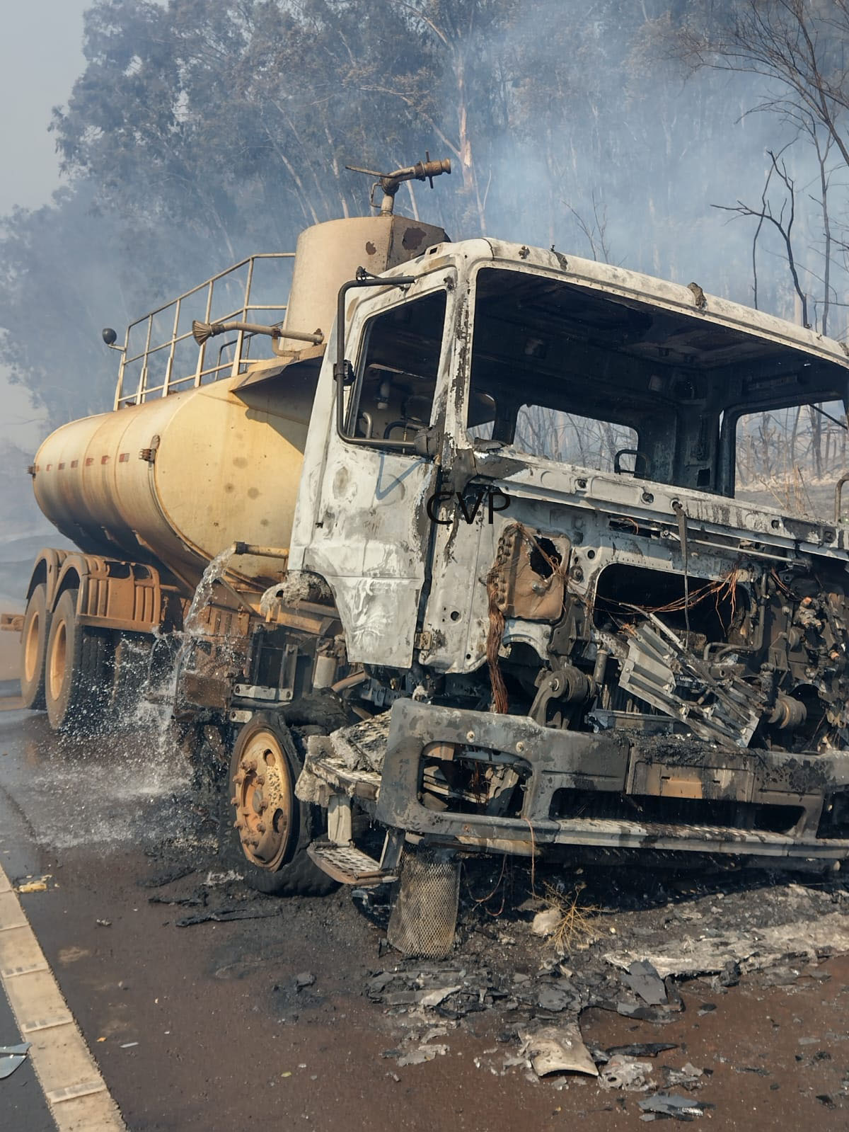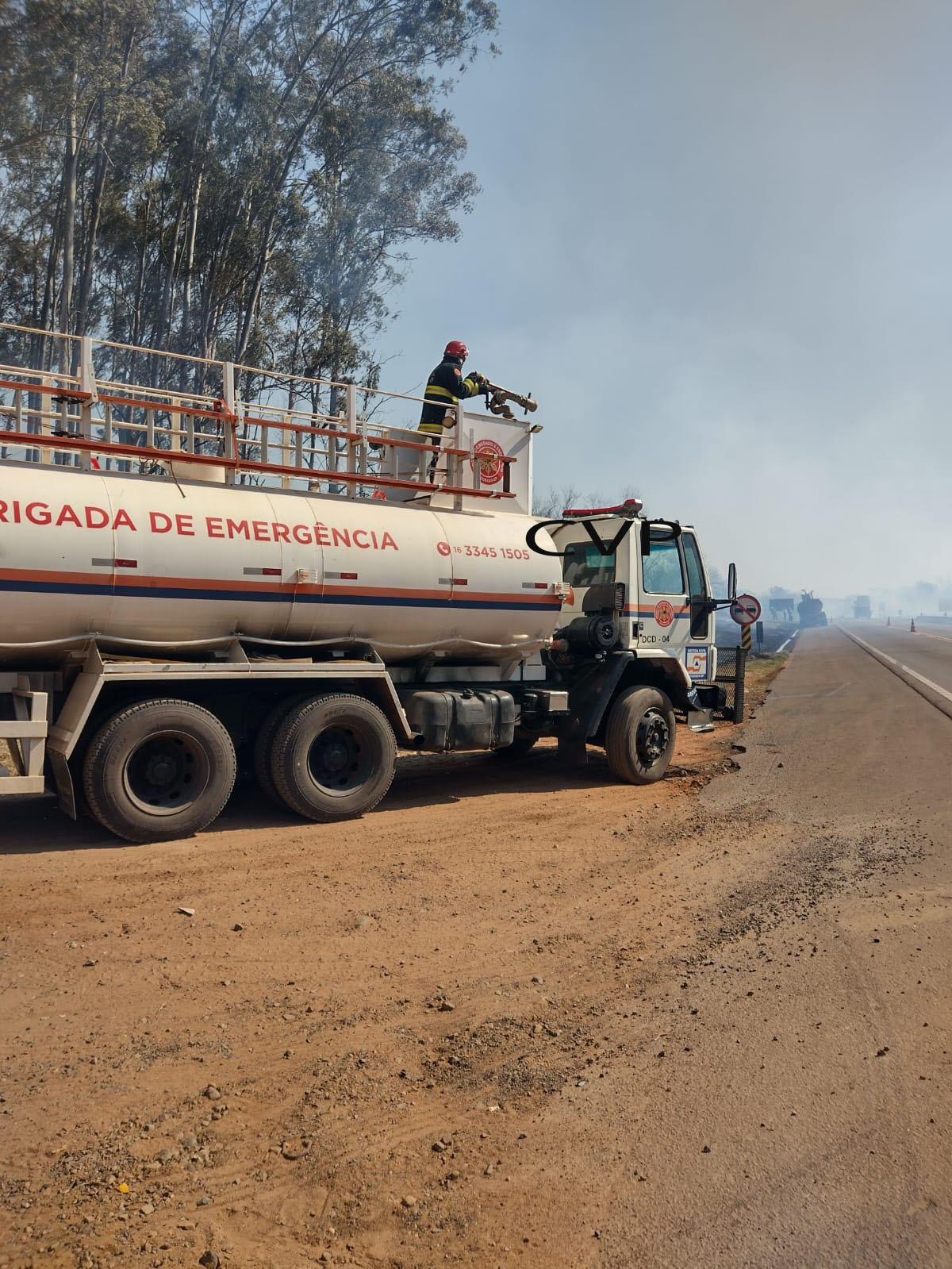 Segundo informações, o caminhão estava combatendo um incêndio em vegetação, quando teria sofrido uma pane e pegou fogo. Ninguém ficou ferido.