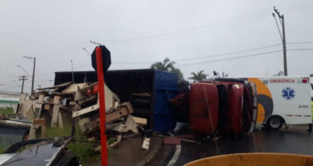 O acidente ocorreu por volta das 11:00, segundo a Polícia Rodoviária. Apesar do tombamento, ninguém ficou ferido. A PM está no local para tomar as medidas cabíveis.