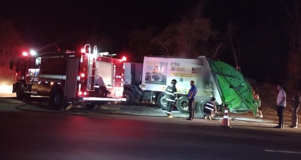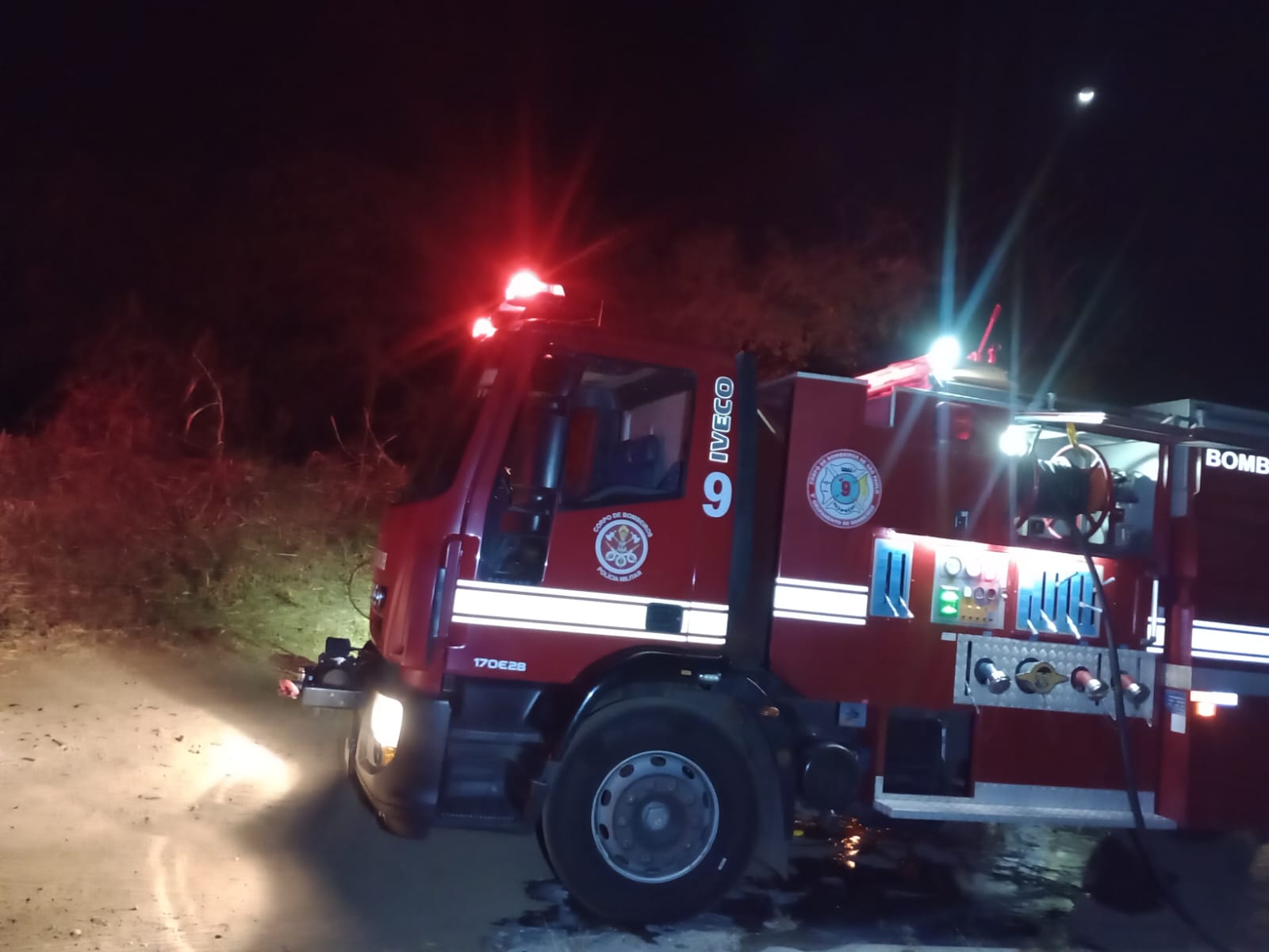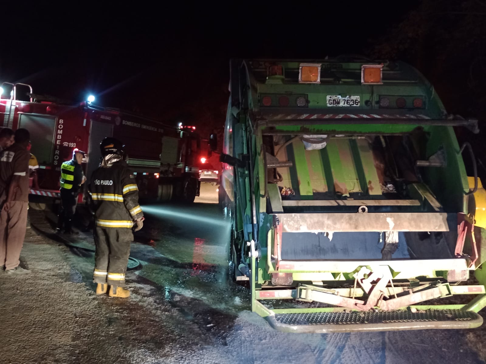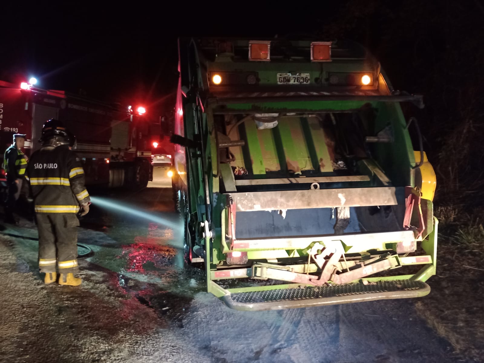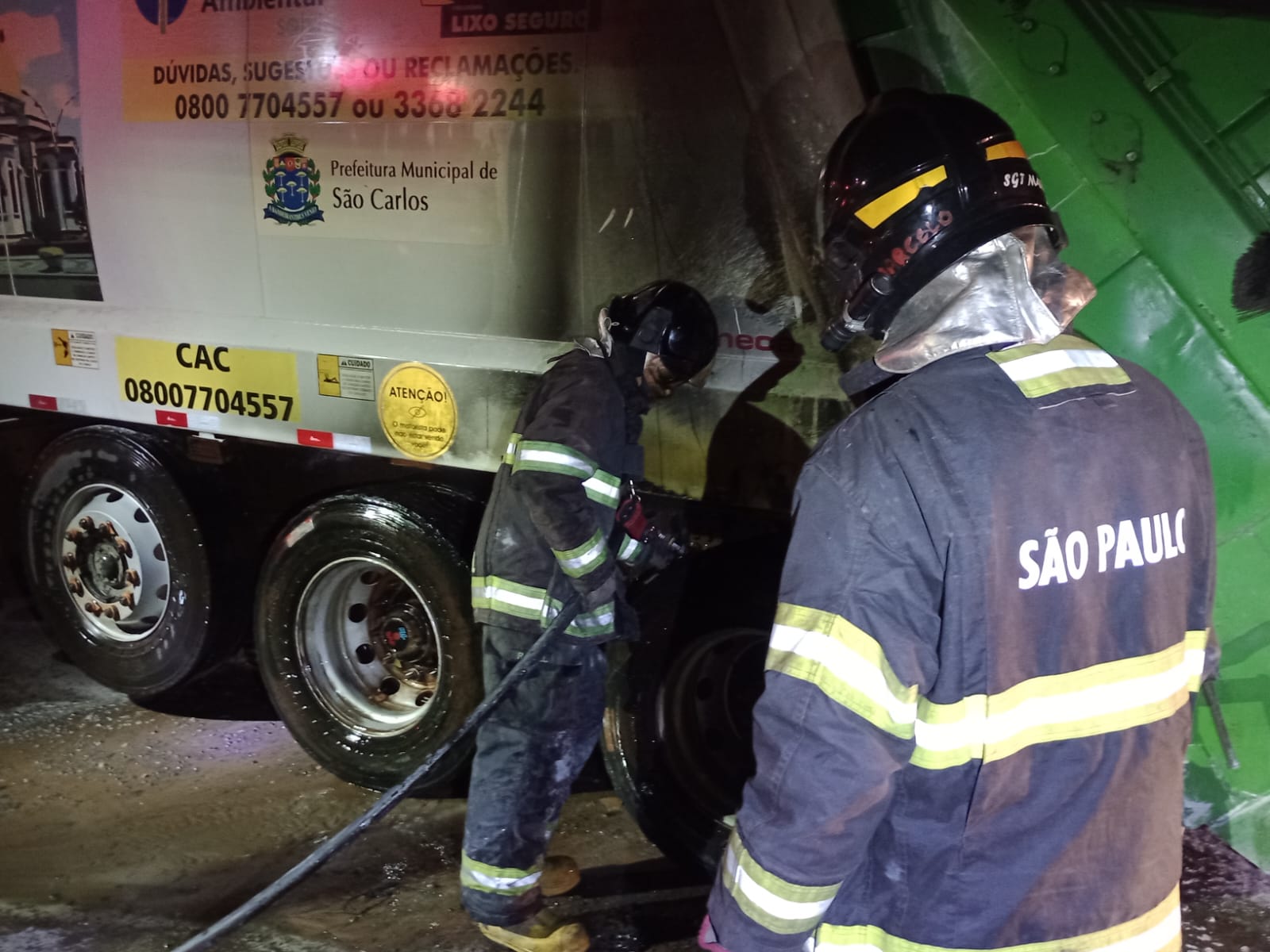 Um caminhão, o qual é usado para carregar lixo, sofreu um princípio de incêndio nesta noite de segunda-feira, 21 de agosto de 2023, na SP-215, entre São Carlos/ Ribeirão Bonito-SP.
