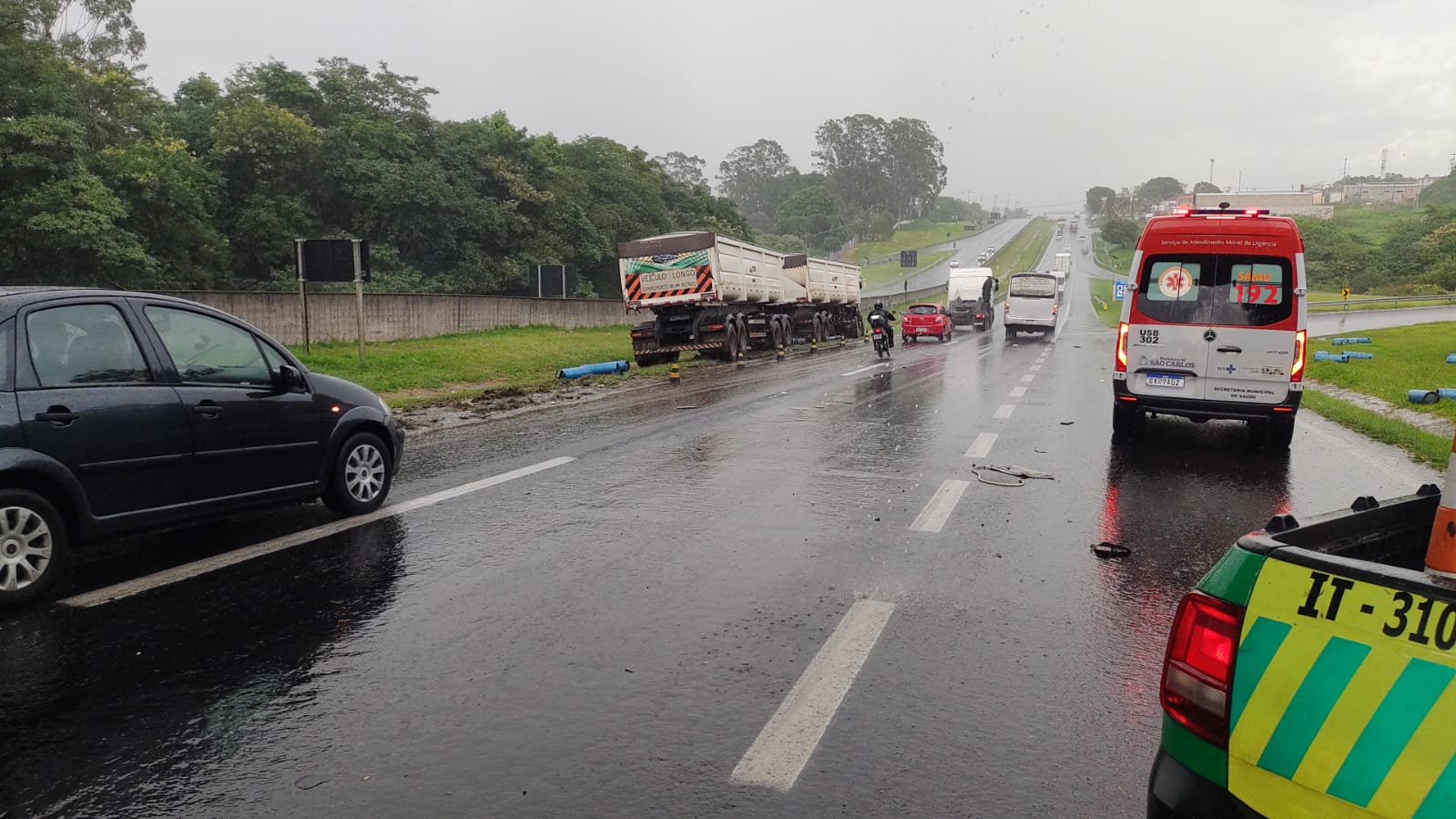 Um homem ficou levemente ferido nesta tarde de terça-feira, 6 de fevereiro de 2024, ao se envolver em um acidente de trânsito no km 235 da rodovia Washington Luís, região do Hospital Universitário, São Carlos-SP.