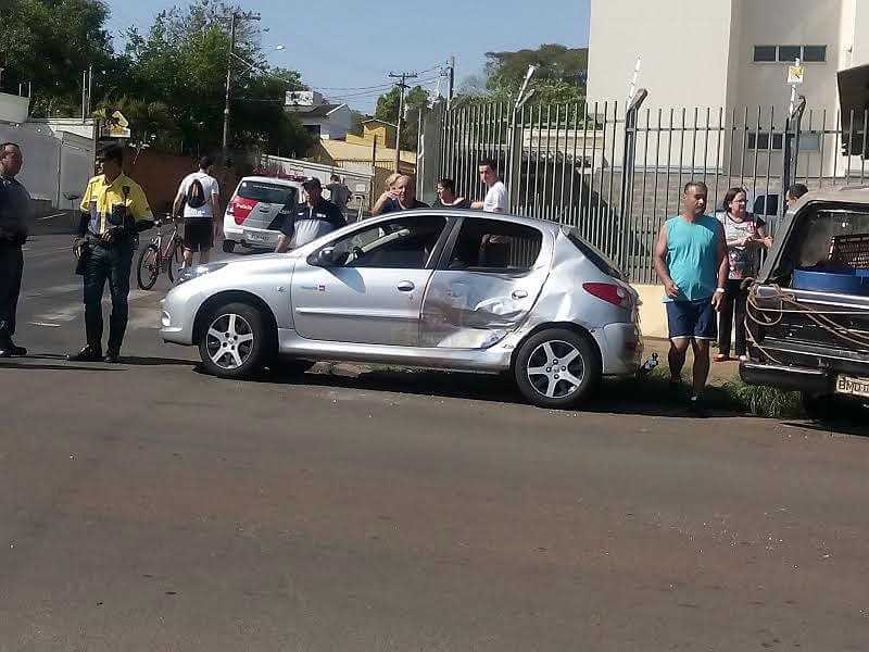 Um senhor derrubou parte de uma grade após se envolver em um acidente de trânsito nesta manhã de segunda-feira, 12 de setembro de 2016, no cruzamento da Alameda dos Crisântemos, com a rua Adriano Del Nero, bairro Cidade Jardim, São Carlos-SP.